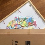 Each map, 85×63 cm is shipped ready packed in reinforced cardboard, wrapped in tissue paper, and framed in a light colored wood which goes well in every possible living space and environment.