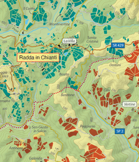 Carta a colori con tutti i vigneti esistenti all’interno della denominazione Chianti Classico.